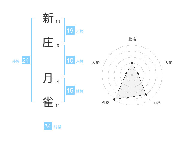 新庄 月雀さんの総格は34画の2点!
