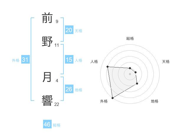 前野 月響さんの外格は31画の5点!
