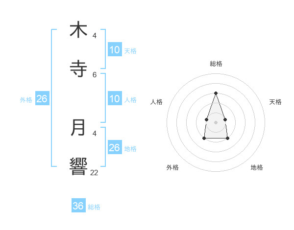 木寺 月響さんの地格は26画の2点!