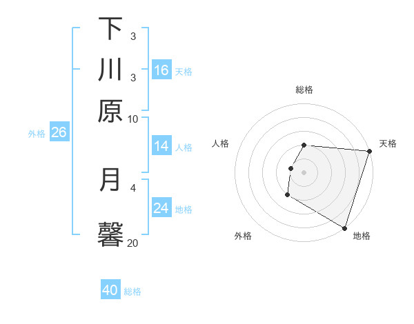 下川原 月馨さんを姓名の画数から五運を鑑定