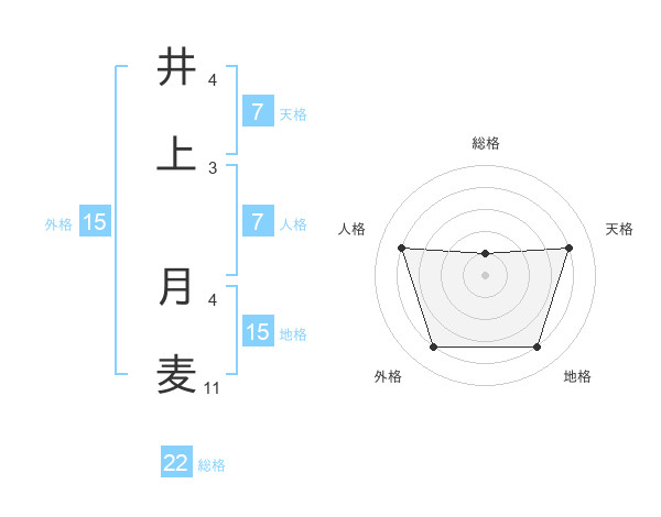 井上 月麦さんの総格は22画の1点!