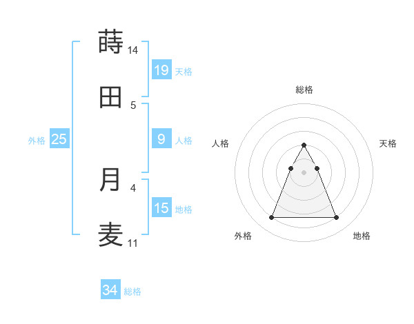 蒔田 月麦さんの総格は34画の2点!
