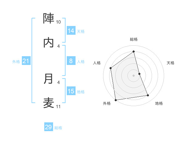 陣内 月麦さんの外格は21画の5点!