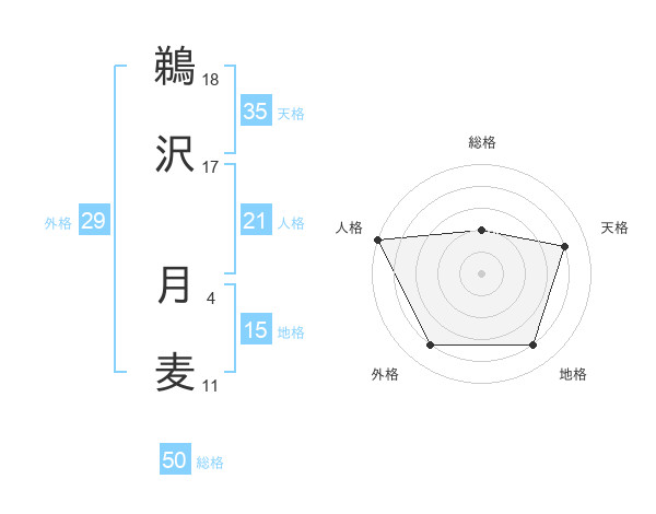 鵜沢 月麦さんの天格は35画の4点!