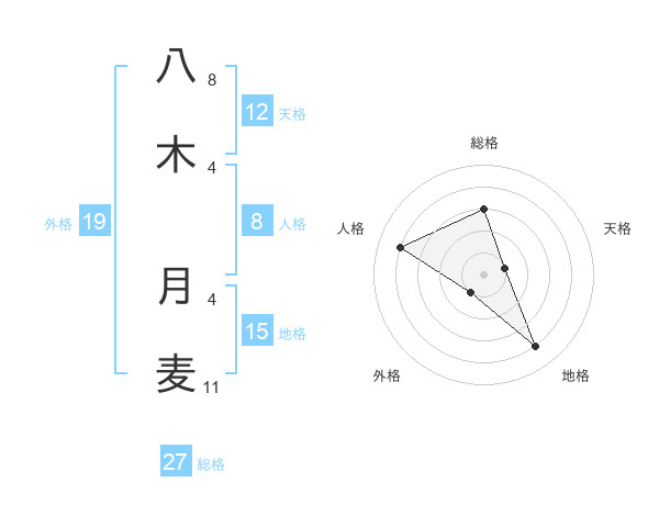 八木 月麦さんの総格は27画の3点