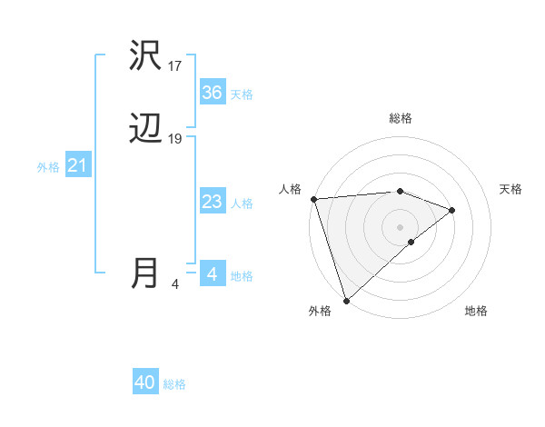 沢辺 月さんの総格は40画の2点!