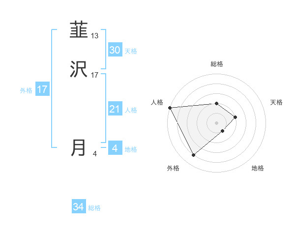 韮沢 月さんの外格は17画の4点!