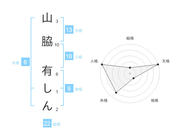 山脇 有しんさんを姓名の画数から五運を鑑定