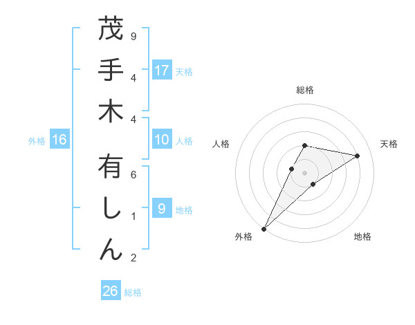 茂手木 有しんさんを姓名の画数から五運を鑑定