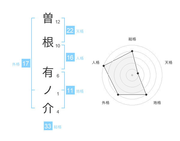 曽根 有ノ介さんの総格は33画の4点