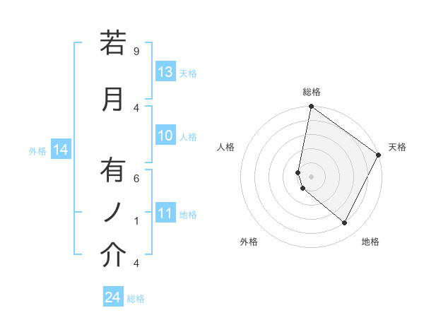 若月 有ノ介さんの天格は13画の5点!