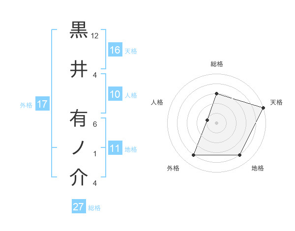 黒井 有ノ介さんを姓名の画数から五運を鑑定