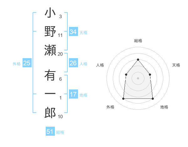 小野瀬 有一郎さんを姓名の画数から五運を鑑定