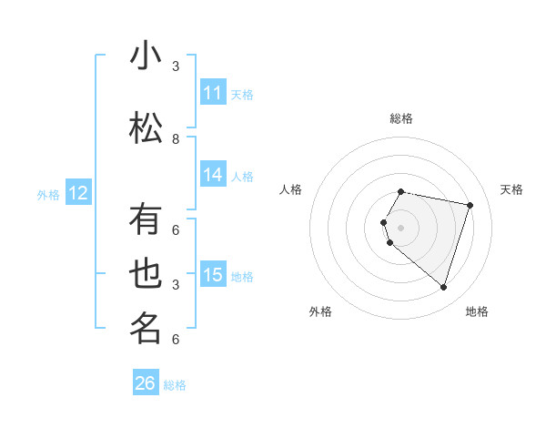 小松 有也名さんの総格は26画の2点!
