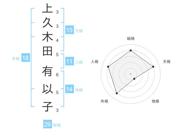 上久木田 有以子さんを姓名の画数から五運を鑑定