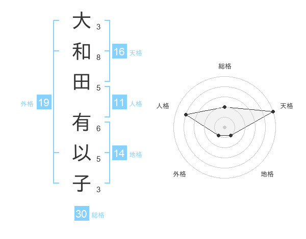 大和田 有以子さんを姓名の画数から五運を鑑定