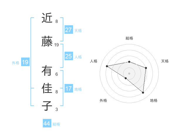 近藤 有佳子さんの外格は19画の1点!