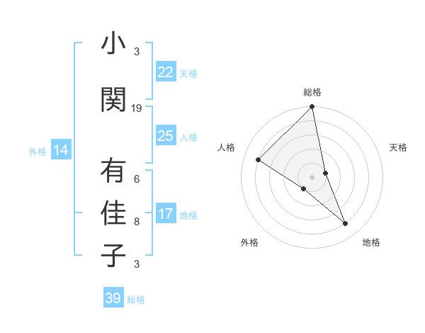 小関 有佳子さんを姓名の画数から五運を鑑定