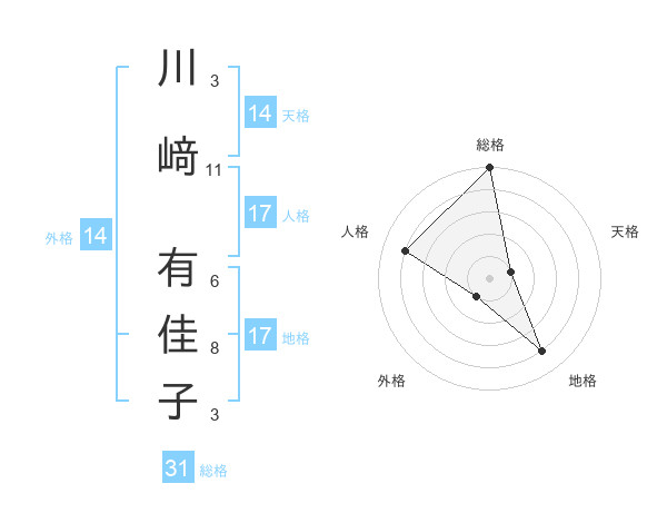 川﨑 有佳子さんの総格は31画の5点!