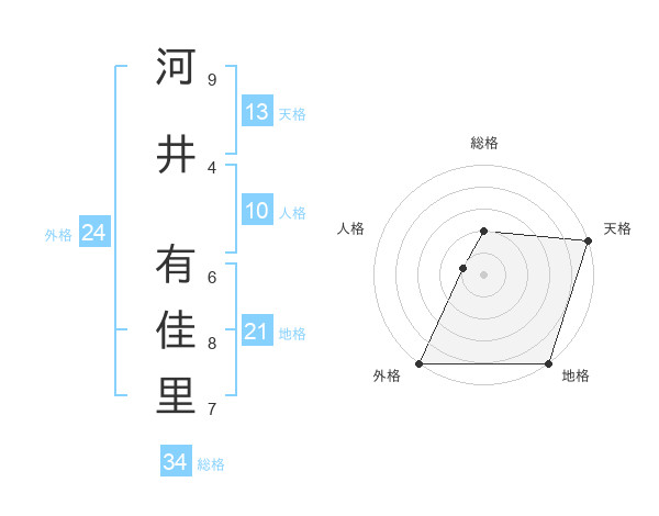 河井 有佳里さんを姓名の画数から五運を鑑定
