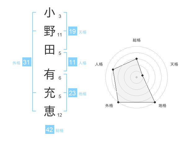 小野田 有充恵さんの外格は31画の5点!