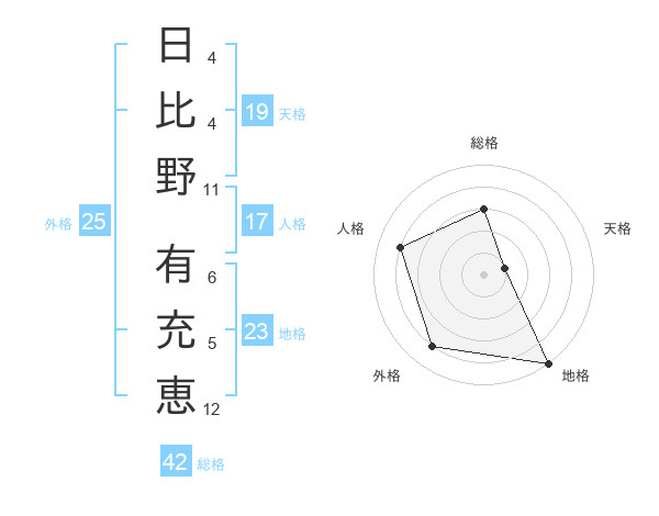 日比野 有充恵さんを姓名の画数から五運を鑑定