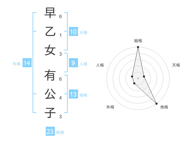 早乙女 有公子さんを姓名の画数から五運を鑑定