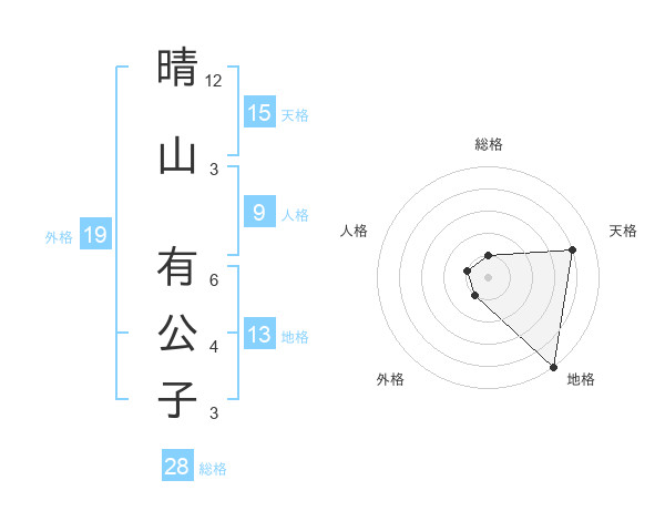 晴山 有公子さんを姓名の画数から五運を鑑定