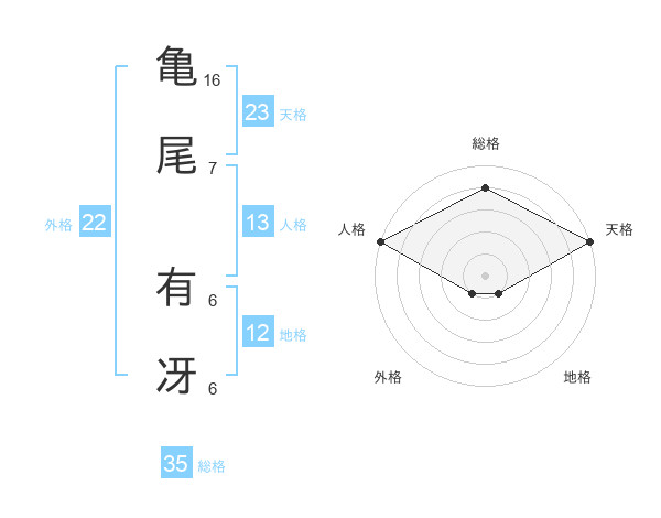 亀尾 有冴さんを姓名の画数から五運を鑑定