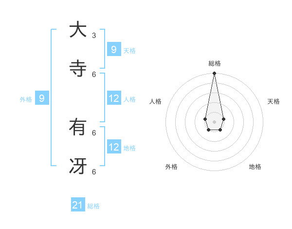 大寺 有冴さんの総格は21画の5点!