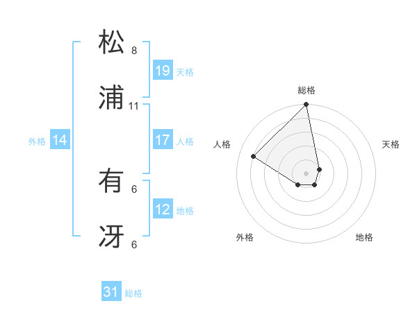 松浦 有冴さんを姓名の画数から五運を鑑定