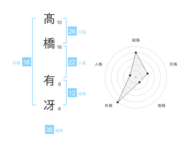 髙橋 有冴さんの総格は38画の4点!