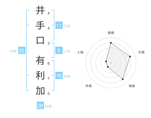 井手口 有利加さんの総格は29画の4点!