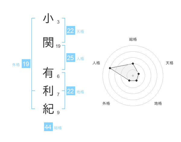 小関 有利紀さんを姓名の画数から五運を鑑定