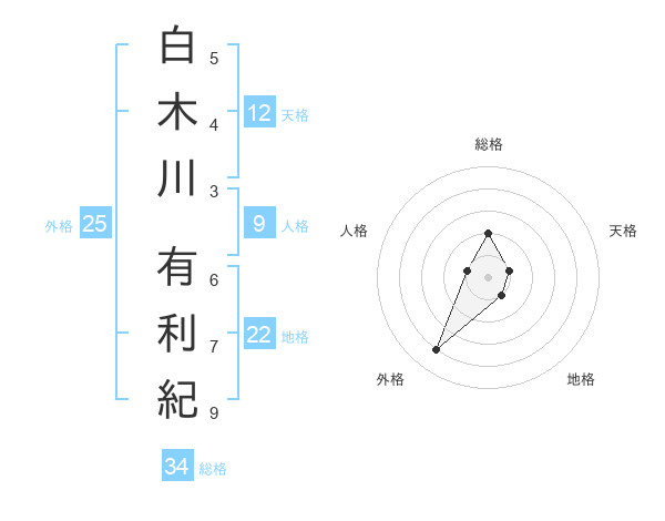 白木川 有利紀さんの総格は34画の2点!