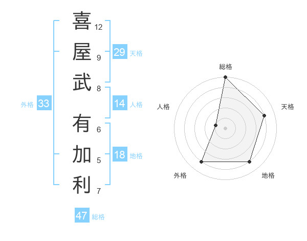 喜屋武 有加利さんの総格は47画の5点!