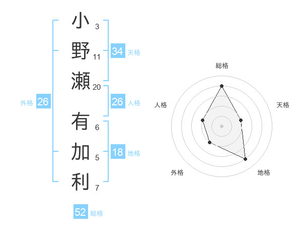 小野瀬 有加利さんを姓名の画数から五運を鑑定