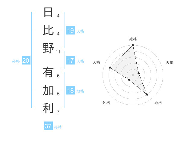 日比野 有加利さんを姓名の画数から五運を鑑定