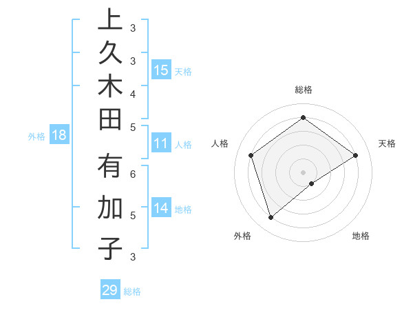 上久木田 有加子さんを姓名の画数から五運を鑑定