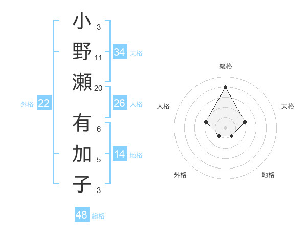 小野瀬 有加子さんの総格は48画の4点