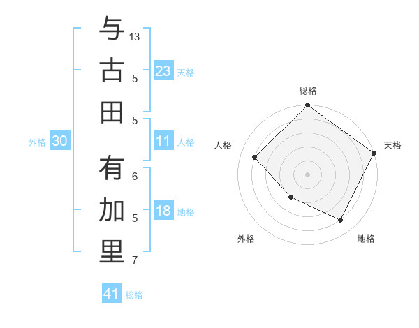与古田 有加里さんを姓名の画数から五運を鑑定