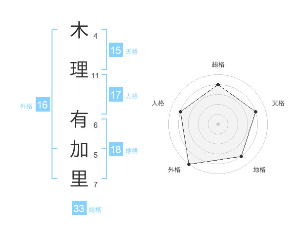 木理 有加里さんの総格は33画の4点!