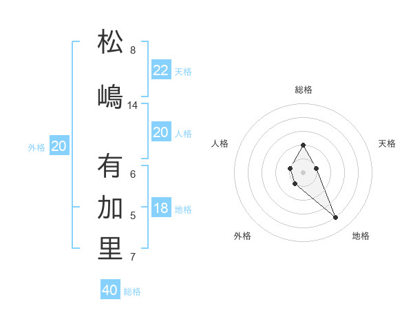 松嶋 有加里さんを姓名の画数から五運を鑑定