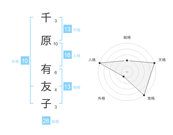千原 有友子さんの天格は13画の5点!