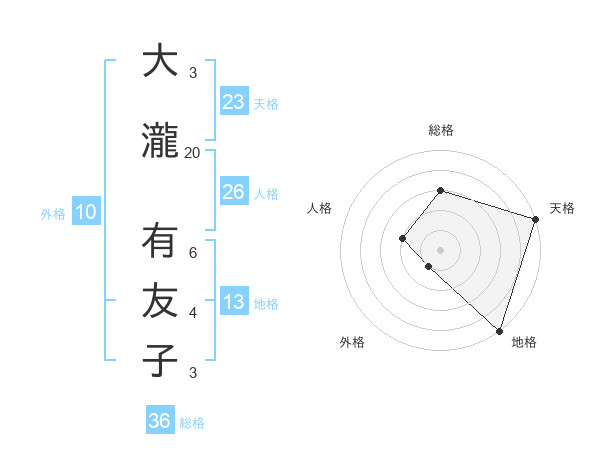 大瀧 有友子さんを姓名の画数から五運を鑑定