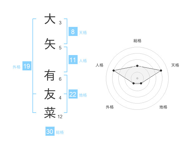 大矢 有友菜さんを姓名の画数から五運を鑑定