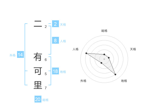 二 有可里さんの総格は20画の1点!