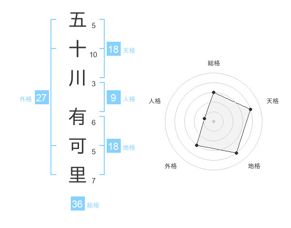 五十川 有可里さんを姓名の画数から五運を鑑定