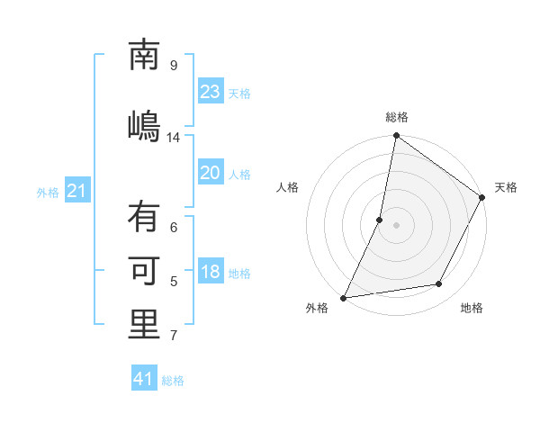 南嶋 有可里さんの総格は41画の5点!