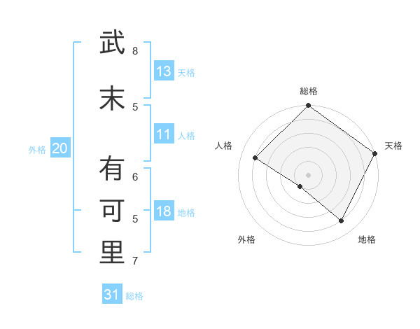 武末 有可里さんの天格は13画の5点!
